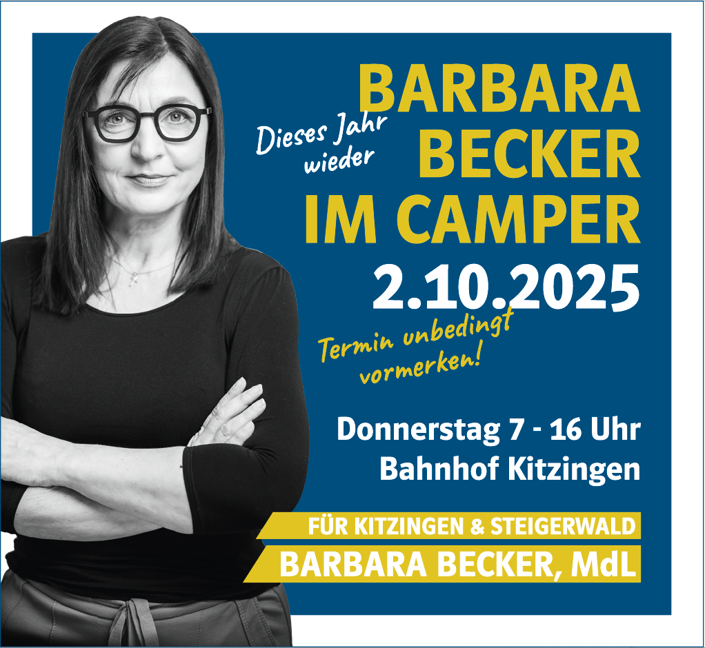 Persönliche Bürgersprechstunde: Jeden dritten Donnerstag im Monat 17:30-18:30 Uhr in meinem Innenstadtbüro Kitzingen, Kaiserstraße 5 und jeden ersten Donnerstag im Monat 17:00-18:00 Uhr in der Verwaltungsgemeinschaft Gerolzhofen, Brunnengasse 5. Anmeldung erbeten: 09325-9800260 oder info@barbarabecker.de.